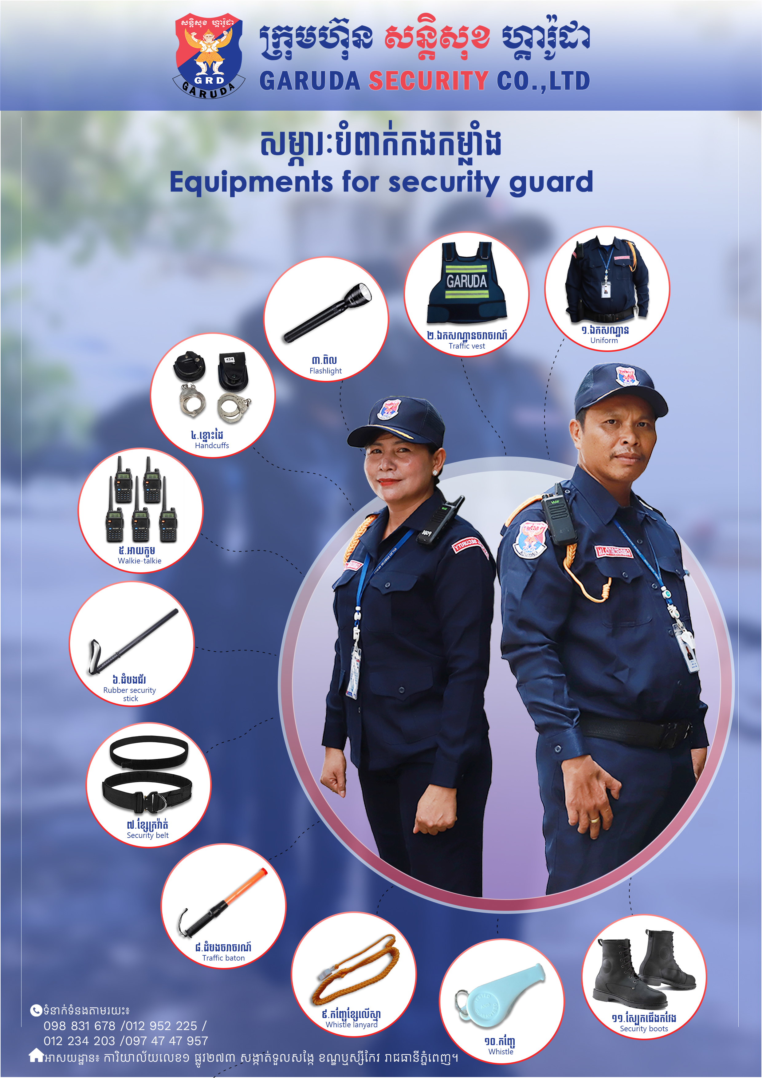 -Photo of equipments: -Photo of security guard with uniform: